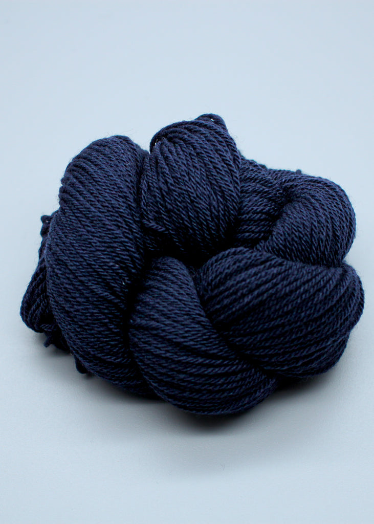 Yarn:   Hudson + West Co. Weld (70% US Merino / 30% US Corriedale; 200 yds [183 m]; 1.76 oz. [50g]): midnight (navy), 4 skeins.